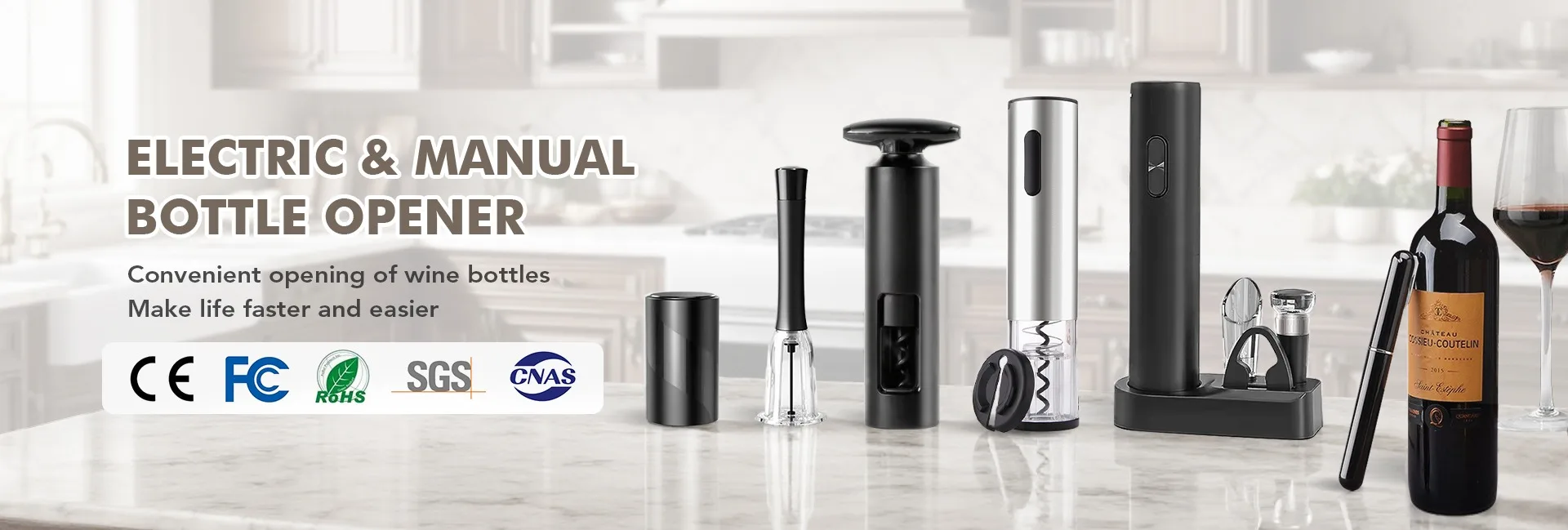 Sản Phẩm chính: Điện mở rượu vang, máy xay điện, Silicone rượu Stopper, điện rượu vang Aerator, nhựa rượu vang thủy tinh